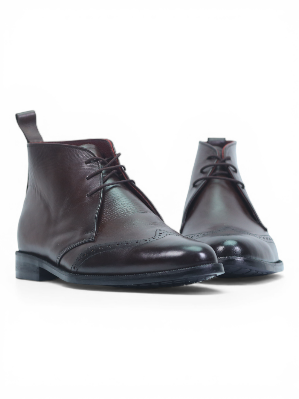 Crafted from premium smooth leather in a rich Brown finish, the boot features refined punch-pattern detailing across the heel, sides, and toe—adding texture and visual depth without overwhelming its clean silhouette. Contrasting laces bring a subtle statement, complemented by signature contrast stitching along the midsole for a refined, confident finish.